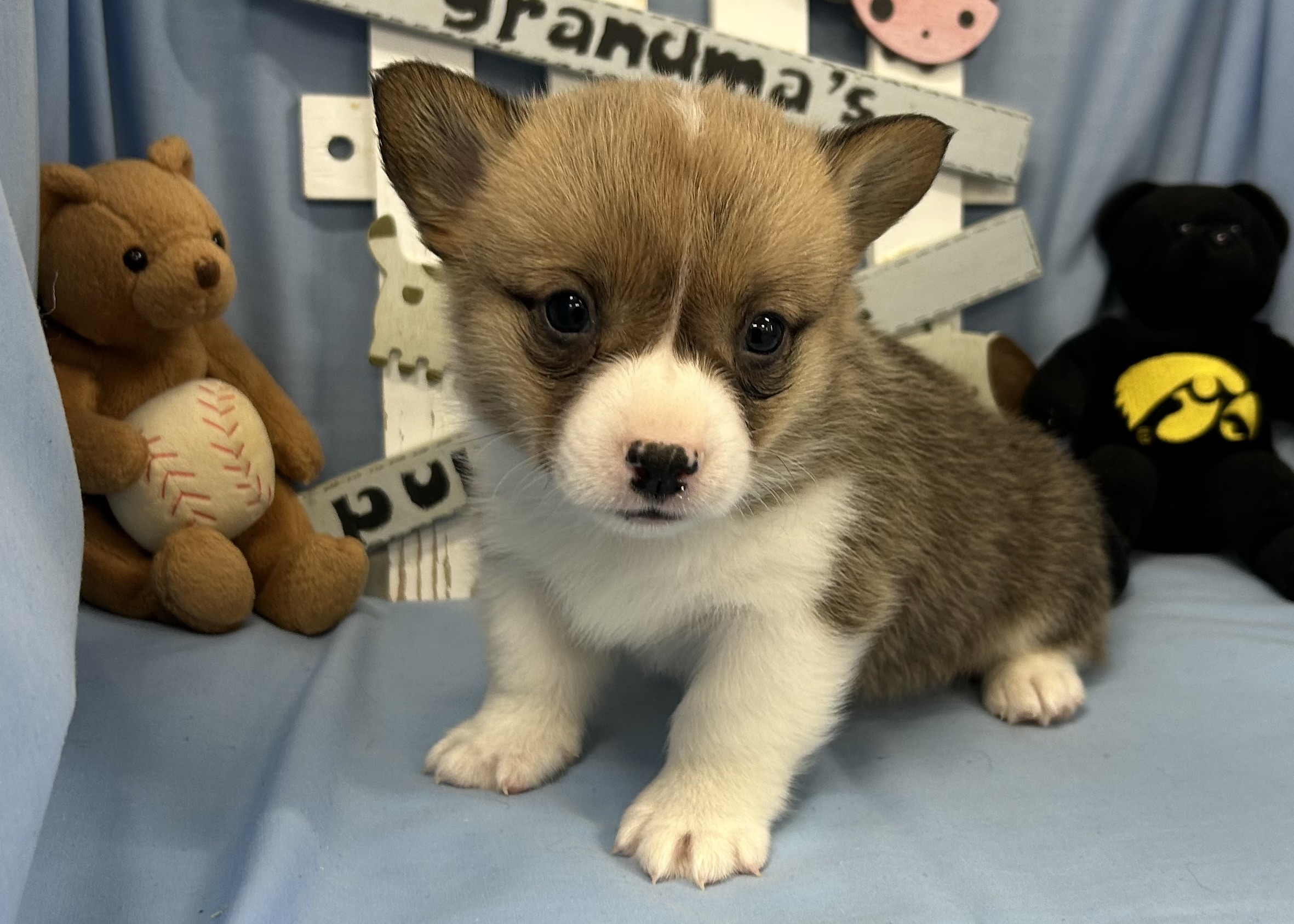 My sister in law, Marilyn Starkey, also raises corgi puppies that we sell together. Please visit her website, www.bigcedarpuppies.com, or call her at 319/931-4947 for more information. You can check her website for pictures.